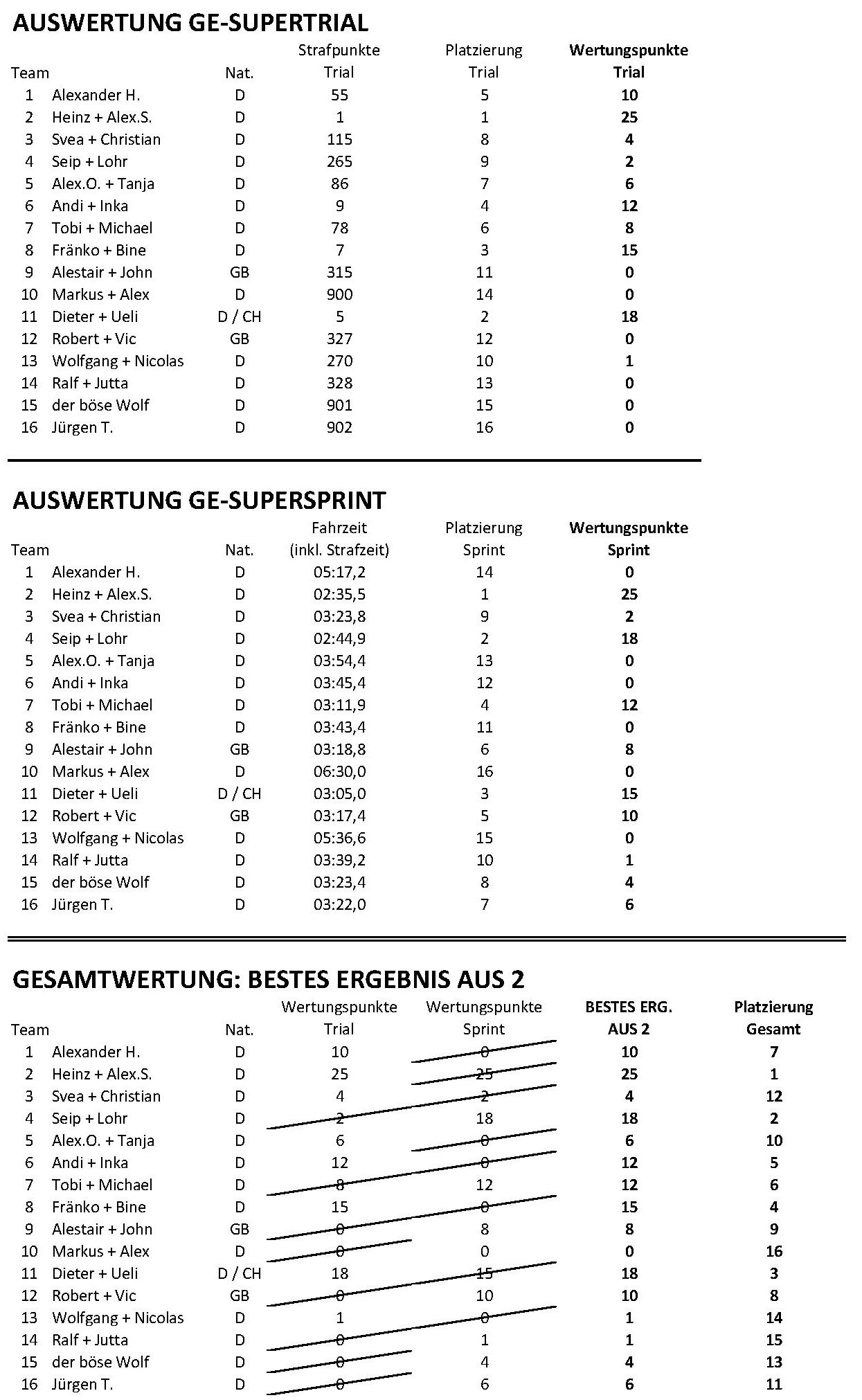 Somit wurde aus der Gesamtwertung "beste 2 Ergebnisse aus 3" nur jeweils das "beste Ergebnis aus 2" gewertet, aber auch diese Wertung soll der Transparenz halber nicht verschwiegen werden.
